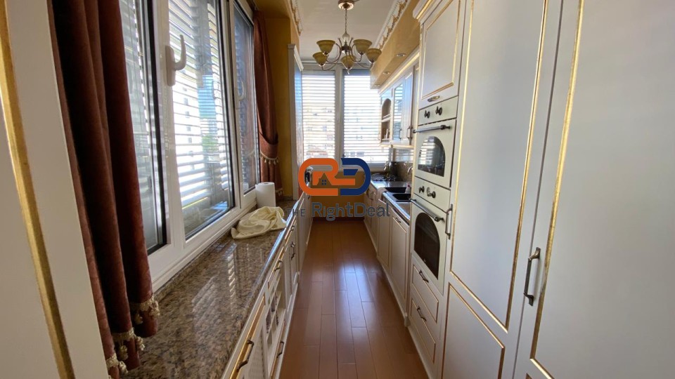 REFAA638848 - Ne Kinostudio ,Shitet Apartament 2+1+2 Me Hapesira Te Bollshme!! Apartamenti ndodhet ne katin e pare banim te nje pallati te mireadministruar me ashensor dhe ka siperfaqe bruto 122 m2 dhe neto 107 m2. Apartamenti organizohet ne sallonin e ndenjes me kendin e gatimit te vecuar, dy dhoma e gjumit, dhoma matrimoniale me tualet te brendshem si dhe tualeti kryesor. Apartamenti eshte totalisht i investuar qe nga parketi i drurit, dyert dhe dritaret me cilesoret ne treg ,sistemi chiller, tualetet etj. Apartamenti shitet i pa mobiluar ne kete cmim. Prona disponon dokumentacion te rregullt hipiotekor. Per me shume informacion dhe vizite ne prone kontaktoni Agjensine Imobiliare The Right Deal ne numrin e kontaktit: +355674032997!!!